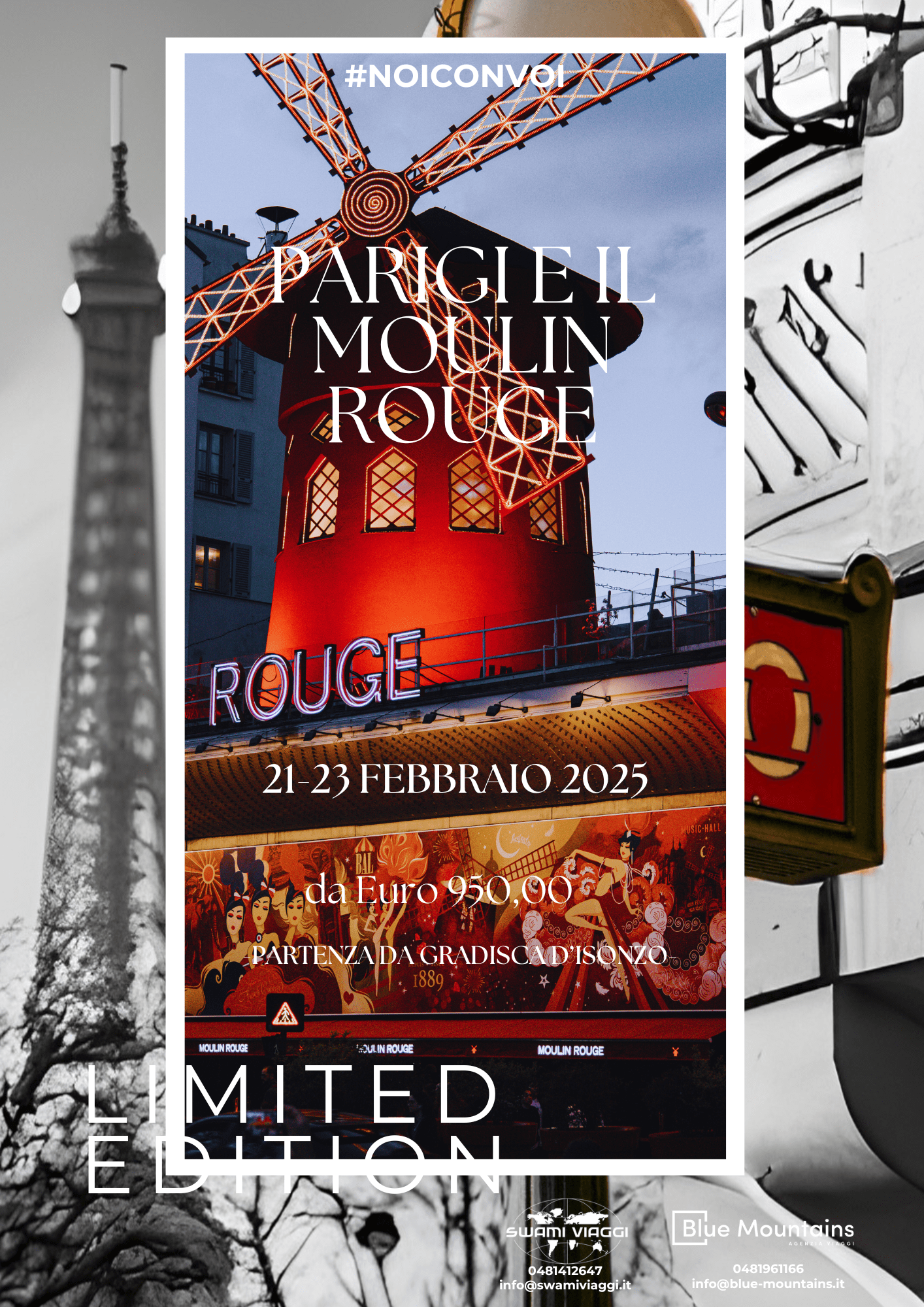 Lasciati incantare dalla magia della Belle Époque. Perditi tra le linee sinuose dell’Art Nouveau che adornano i palazzi parigini, lasciati inebriare dal profumo intenso del caffè appena macinato nei bistrot storici e fatti trasportare dalla melodia del pianoforte che accompagna le danze sfrenate dei cabaret. Non può mancare una serata nel tempio del french cancan: il Moulin Rouge! Un viaggio dalla maestosità della Torre Eiffel, simbolo indiscusso di un’epoca che sognava il futuro, ai vicoli pittoreschi di Montmartre, dove l’arte e la vita bohémienne si intrecciavano: ogni angolo della città ti rivelerà un frammento di quell’eleganza senza tempo.